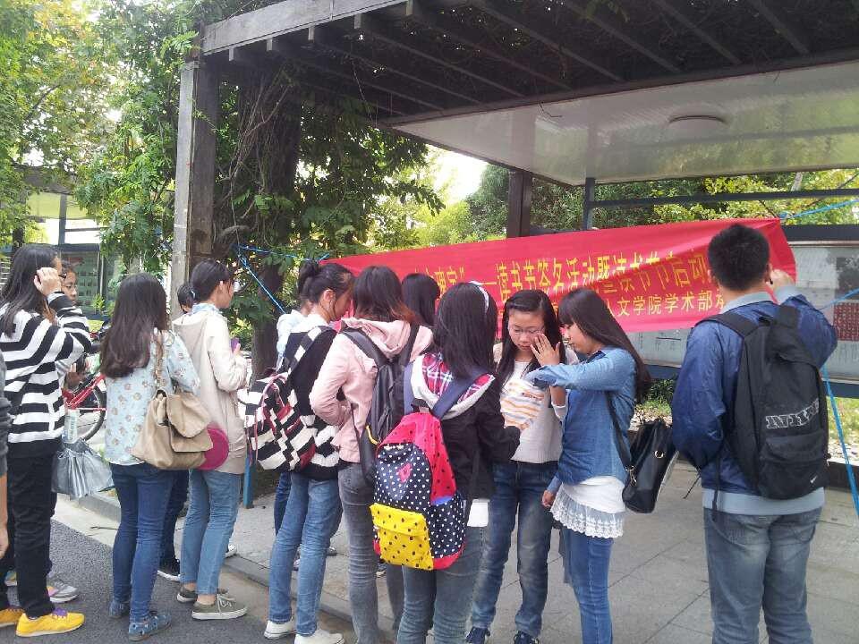 百本书系列活动之“魅力财经,人文瑰宝——读书签名活动”在财大文化长廊开展。本活动由人文学院分团委主办、院学生会学术部承办。