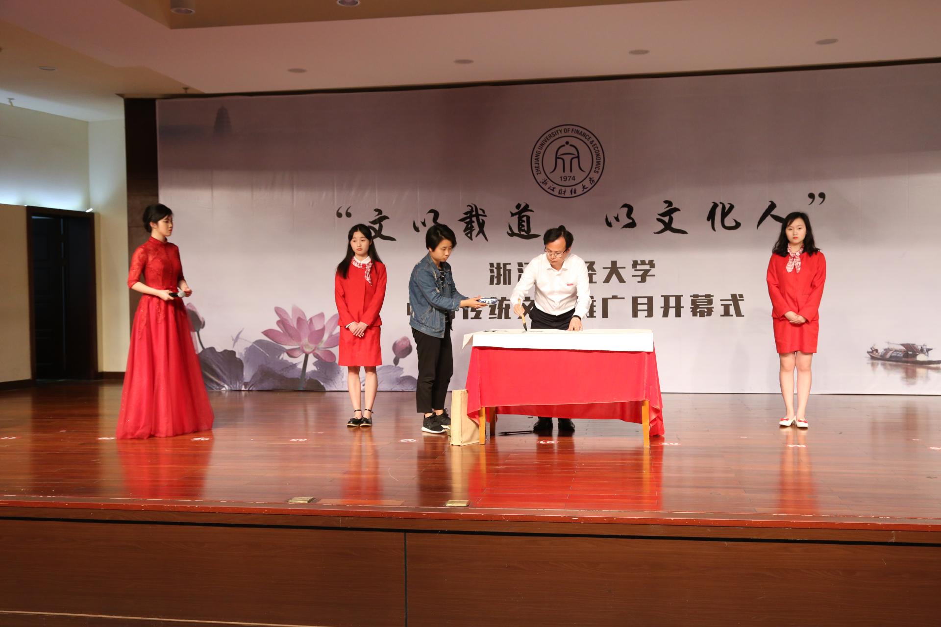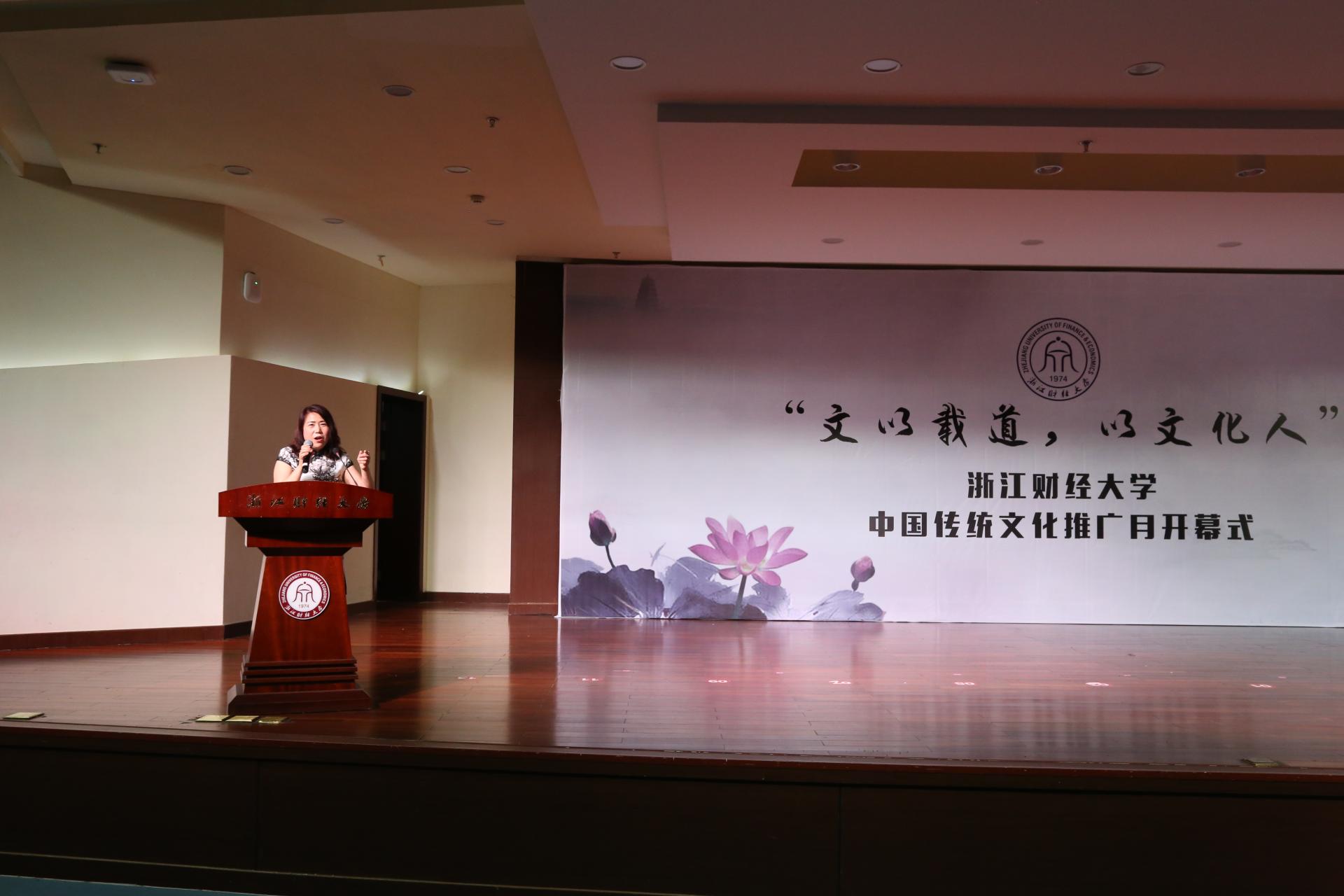 2017年4月20日下午1点30分,“文以载道,以文化人”浙江财经大学中国传统文化推广月开幕式在学术中心第一报告厅举行。党委委员、副校长黄建新出席本次开幕式。党委宣传部、学工部、团委、研工部、漫画人