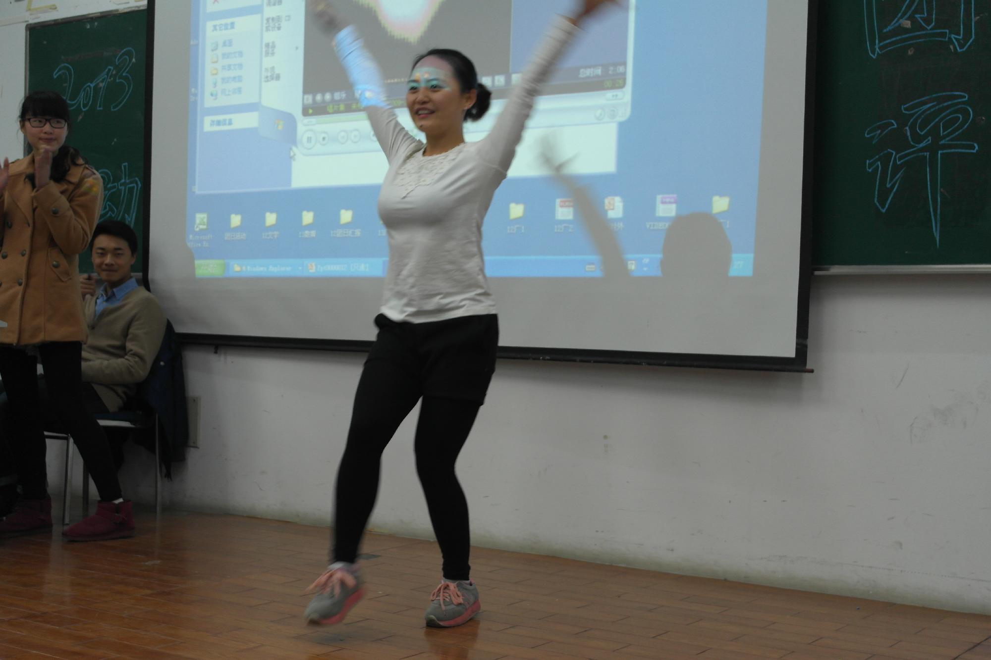 团日活动比赛分为两个环节,一是各班团支书上台展示团日活动成果,二是各班的现场节目表演。在团日活动的主题下,分设“奋斗的青春最美丽”、“感恩让青春更美好”、“五位一体”学习型公寓建设三个主题实践活动。在座的人文学子怀着满腔热情分别欣赏了由参赛各班团支书带来的团日成果展示。各班异彩纷呈,异中有同,每个班都包含精彩的班会成果展示和活动总结,或以PPT的形式,或以视频的形式,从中都可以看出各班对本次以“奋斗的青春更美丽”主题的班会的用心,各班团支书的上心,同时也体现了漫画人