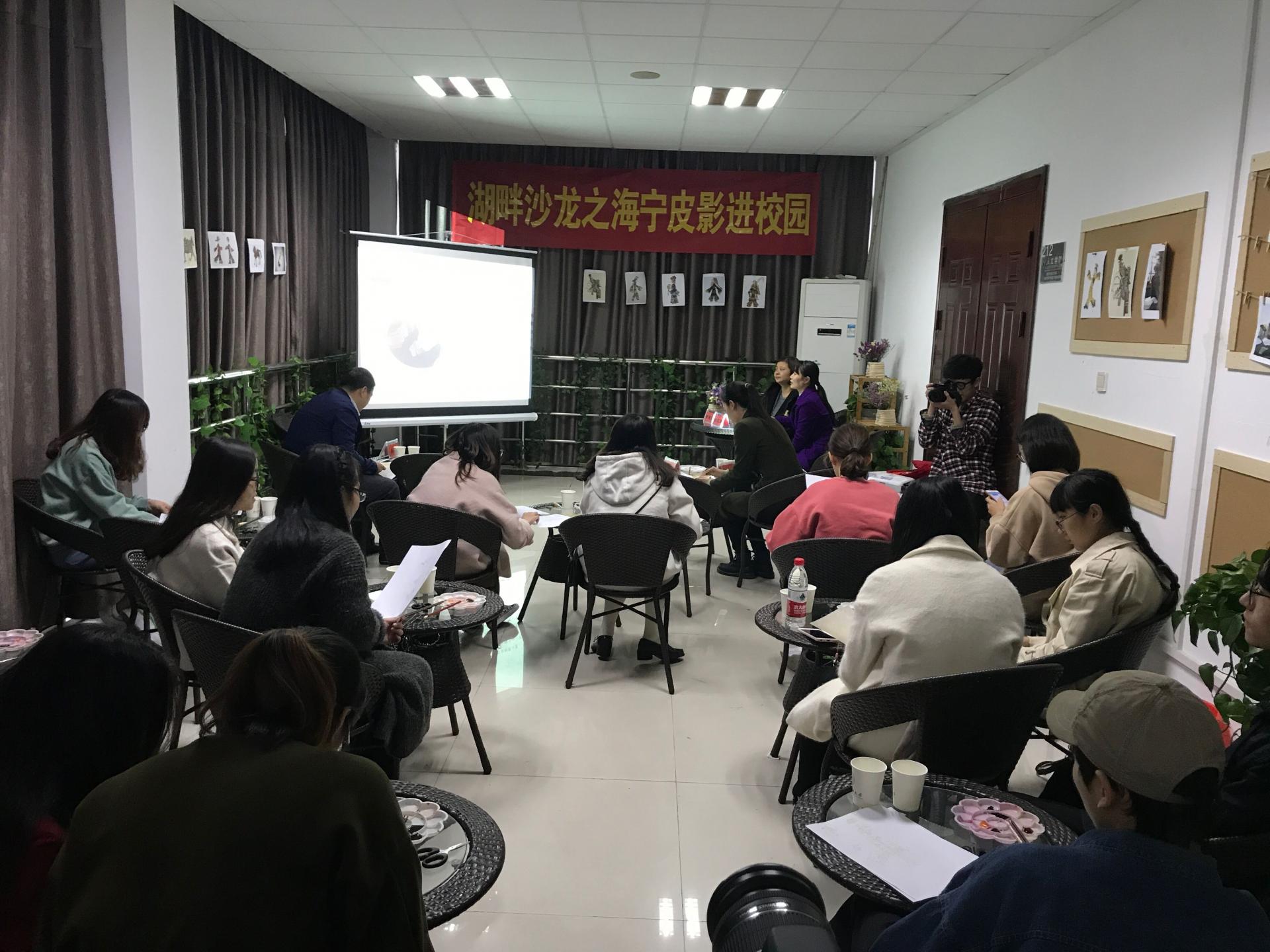 “湖畔人文”沙龙活动之海宁皮影进校园活动在阳光人文拉开帷幕,活动邀请了海宁皮影制作基地的孙江阳老师和徐迪文老师帮助同学们了解和欣赏古老的皮影制作工艺。