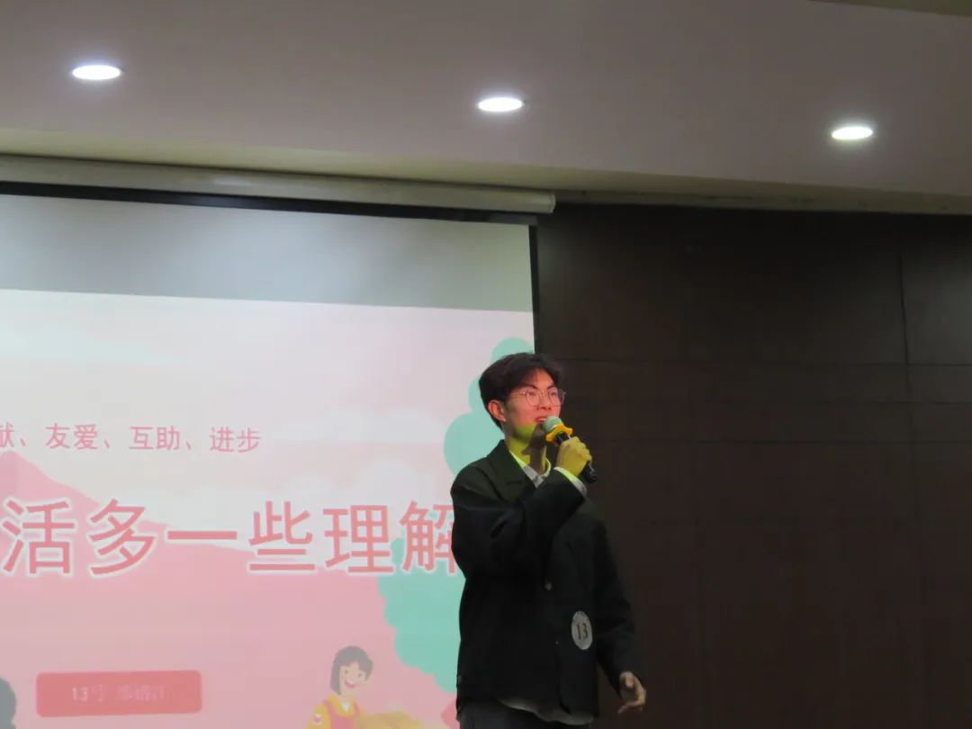 邵镕江选手别出心裁,用与朋友的乌龙故事作为开头,幽默诙谐又引人眼球,为我们带来了《假如生活能多一些理解》。在忙碌和复杂的现代生活中,我们是否曾渴望过更多的理解?理解是透过雾霭照亮彼岸的暖阳,理解熹微的阳光,理解闪烁的星辰,理解身边的一切。