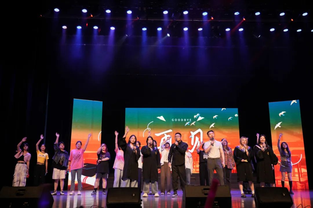 影子剧《再见》铺展重现校园生活的一幕幕,是艺术与现实的碰撞,封藏独特的记忆。师生共唱一曲再见,收束今夜盛宴。