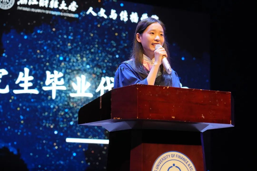 “落其实者思其树,饮其流者怀其源”,来自2021级中国现当代文学专业研究生毕业生代表余艺盈表达了对恩师、同窗、浙财校园的无限谢忱,为学院、恩师及同窗们送上了最真挚的祝福,其拳拳之心,溢于言表。