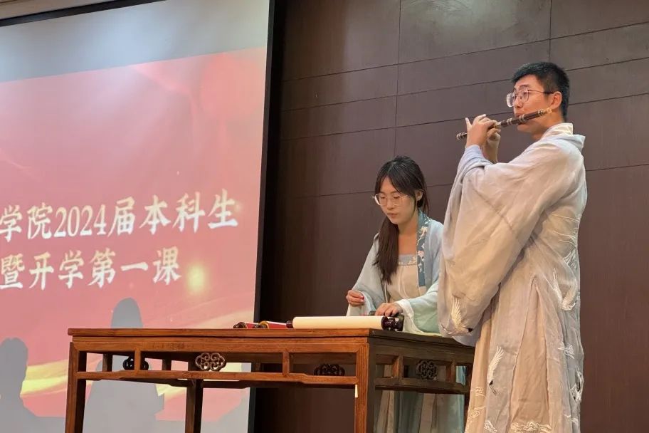 闻道毅行,刚健文明。新生研究生代表杨舒从此院训出发,畅谈何为闻道毅行者,是先以弘扬文化为己任,把握人文尺度,探寻自己翱翔的天空;再以为己之学为习惯,沉淀思想心绪,充盈自己单薄的灵魂;终以努力奋斗为底色,种植人生嘉苗,迎接自己丰收的秋天。此番诚挚的心声,让在坐的各位新生颇有共鸣,以此与各位共勉。