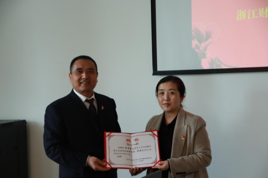 专题党课前,学院党委书记高燕向蒋鑫富老师颁发了漫画人